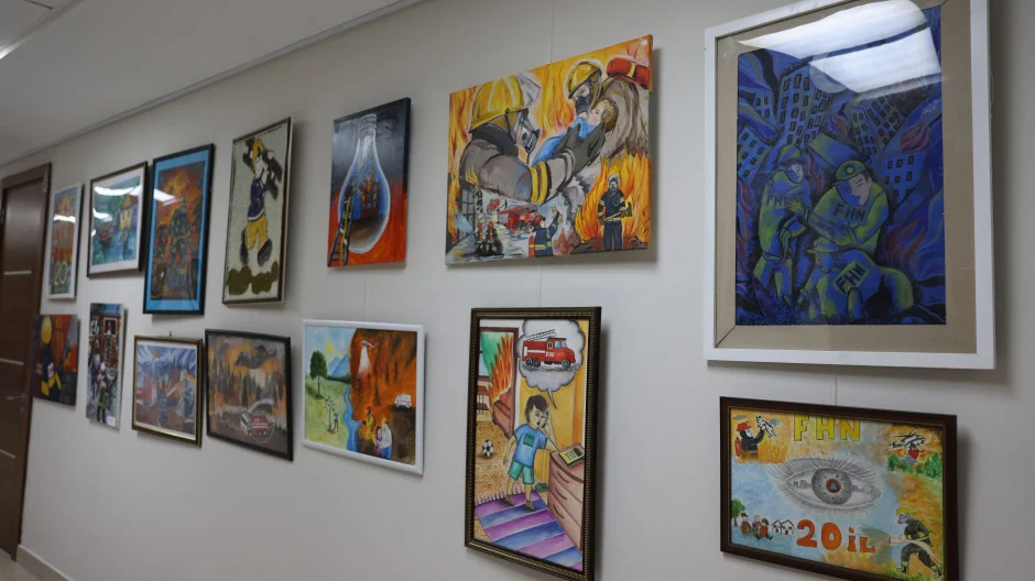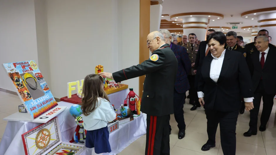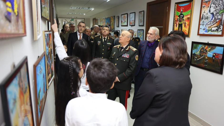 Sonra “Fövqəladə hallar uşaqların gözü ilə” XIII Respublika uşaq yaradıcılıq müsabiqəsinin seçilmiş işlərindən ibarət sərgiyə baxış keçirilib.