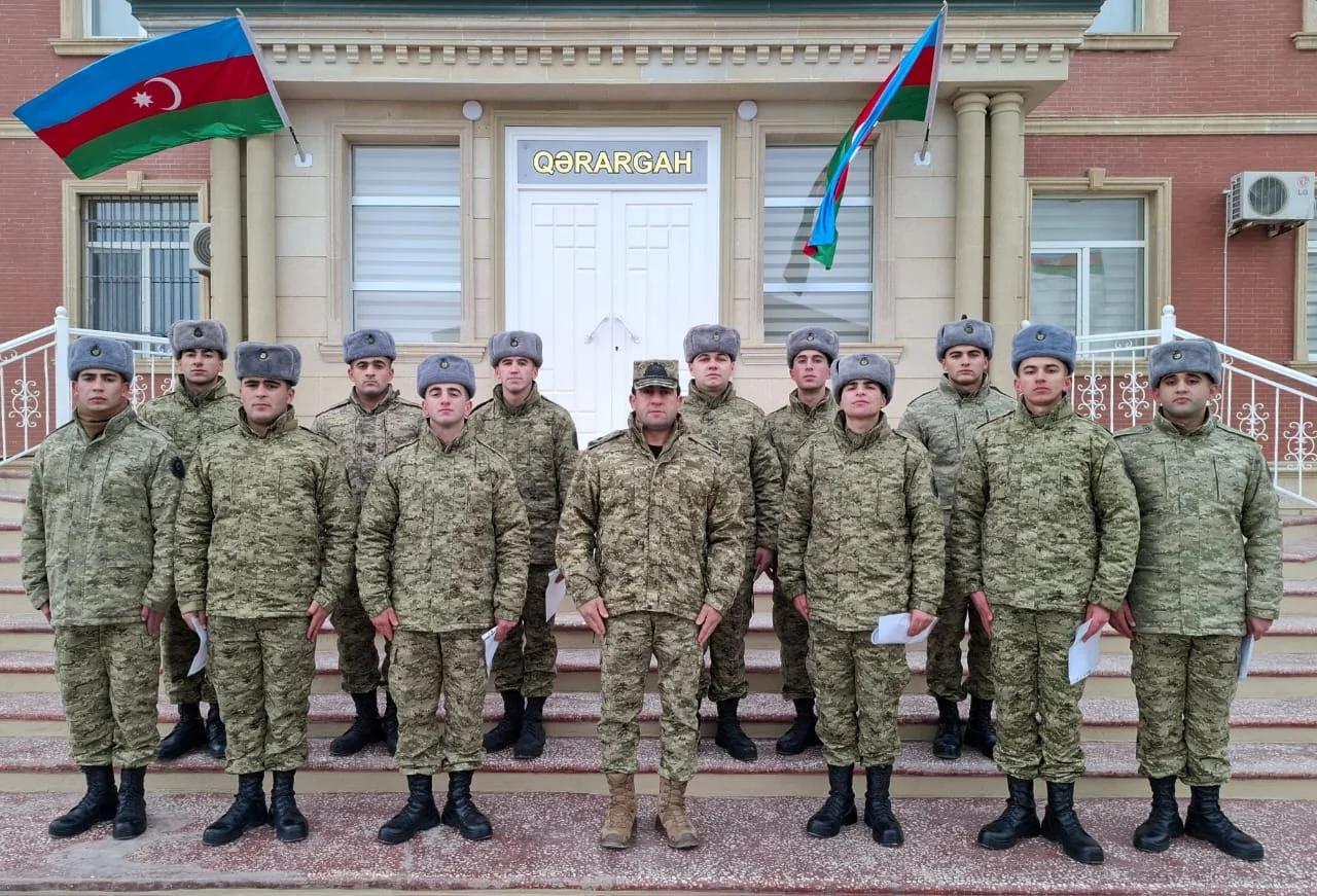 “Vətənə xidmət şərəfdir!” şüarı altında hərbi xidmətlərini başa vuraraq Azərbaycan Respublikası Silahlı Qüvvələrinin ehtiyatına buraxılan müddətli həqiqi hərbi xidmət hərbi qulluqçularına vəzifələrini şərəflə yerinə yetirdiklərinə görə təşəkkür edilmişdir.