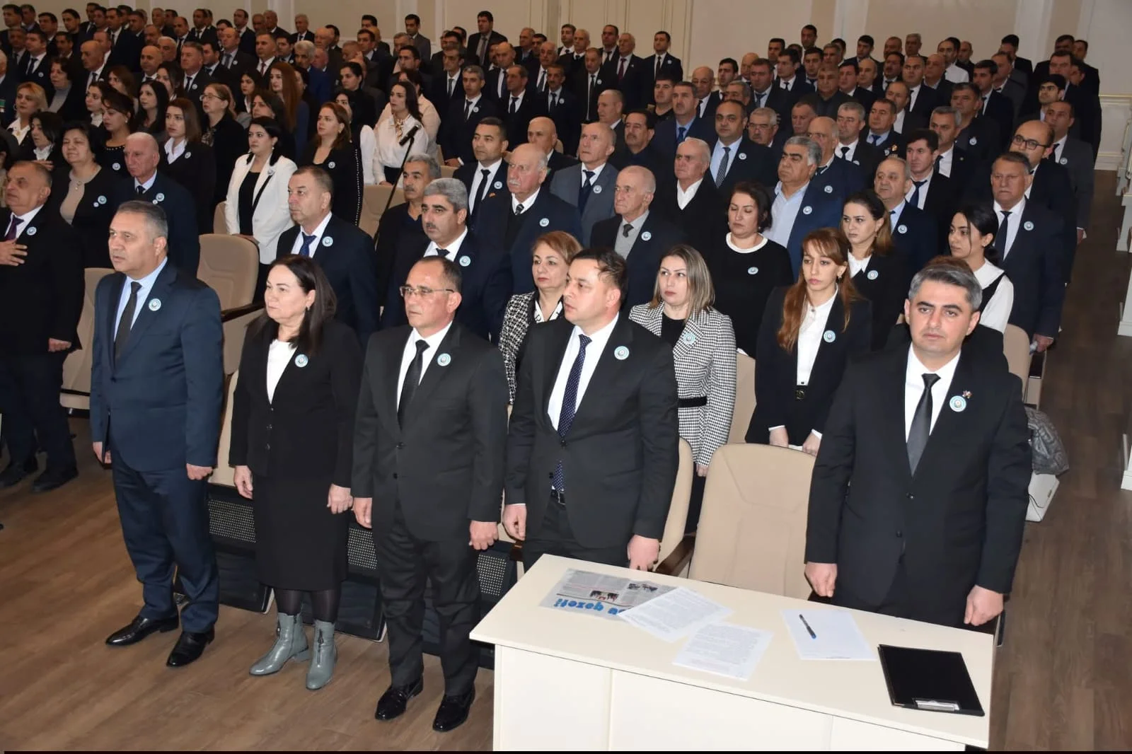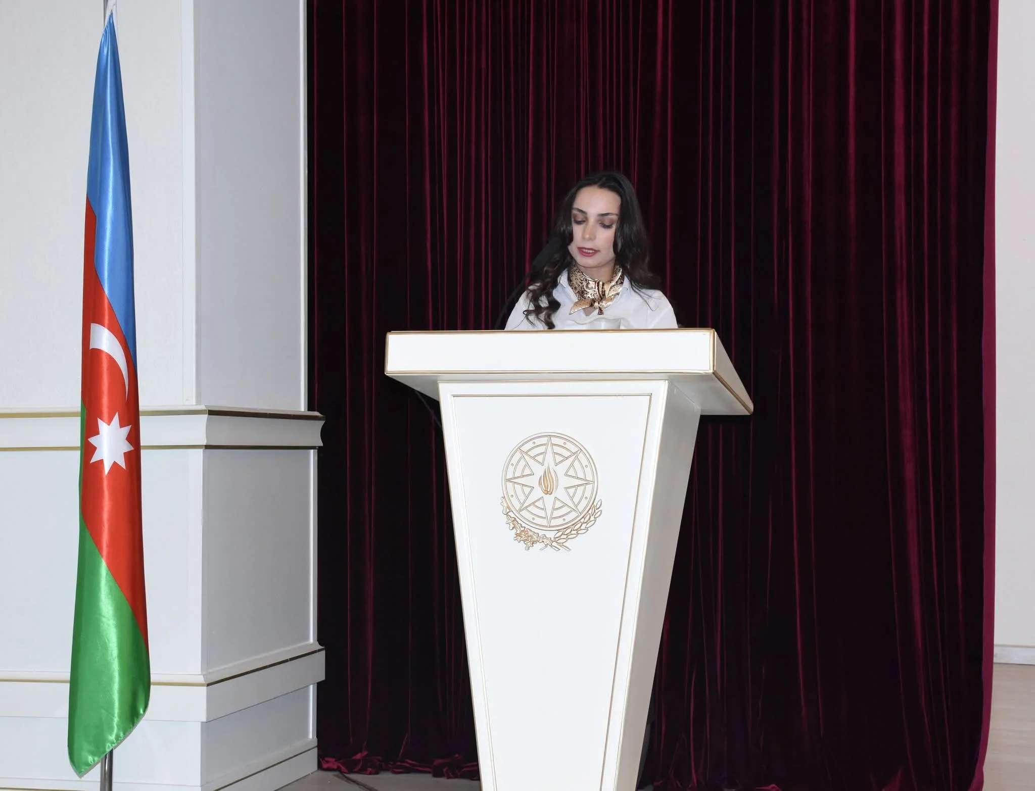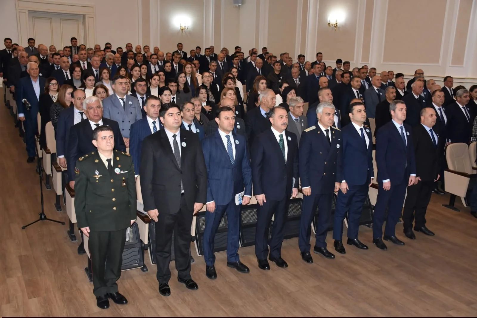 Daha sonra tədbir rayon Mədəniyyət evinin konfrans zalında davam edib. Dövlət himninin səsləndirilməsi ilə başlayan tədbirdə Ulu Öndər Heydər Əliyevin və Azərbaycan Respublikasının ərazi bütövlüyü, suverenliyi uğrunda canlarından keçən şəhidlərin xatirəsi bir dəqiqəlik sükutla yad edilib.