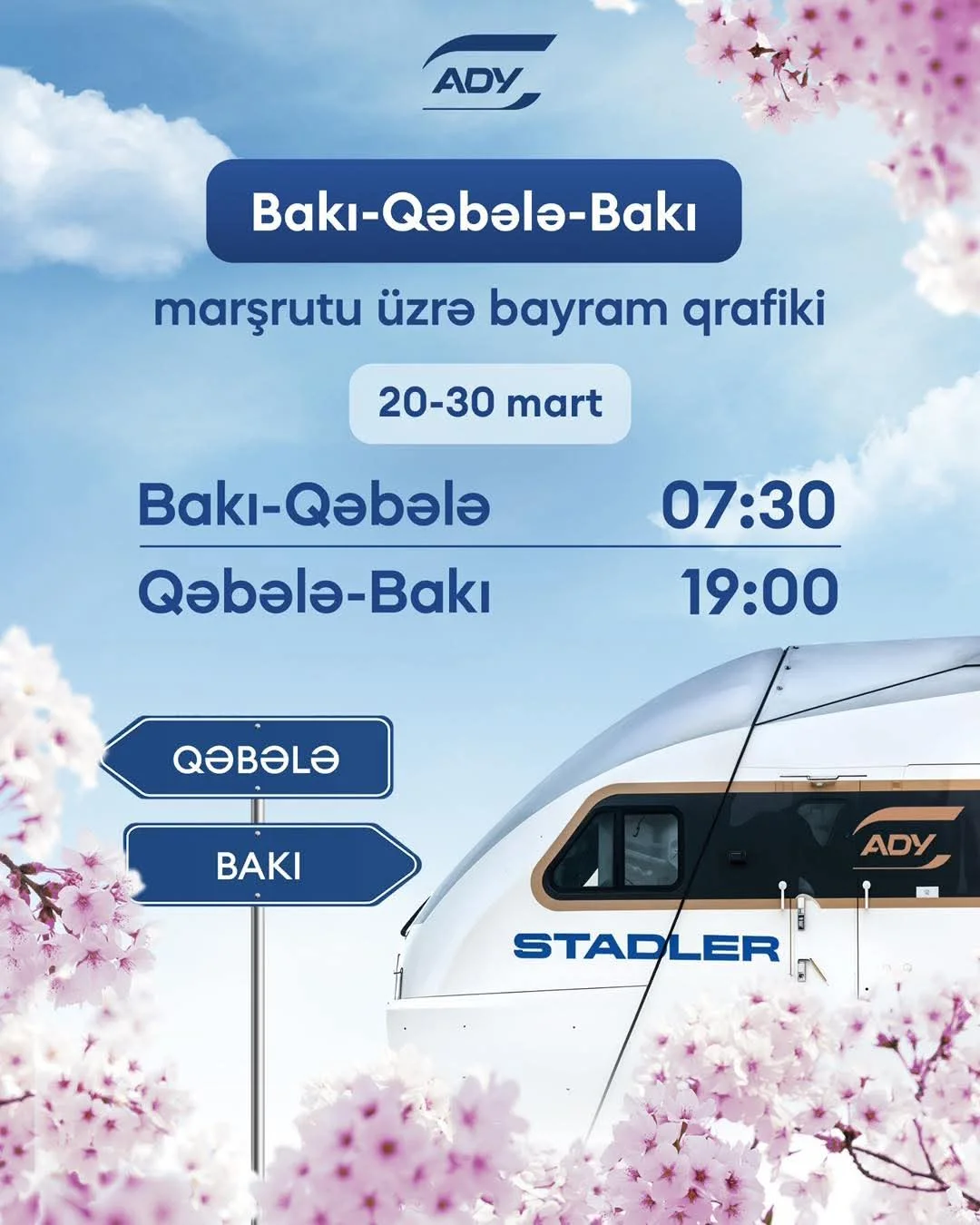 Azərbaycan Dəmir Yolları (ADY) qarşıdan gələn Novruz və Ramazan bayramları münasibətilə ölkədaxili marşrutlar üzrə əlavə qatar reysləri təyin edir.
