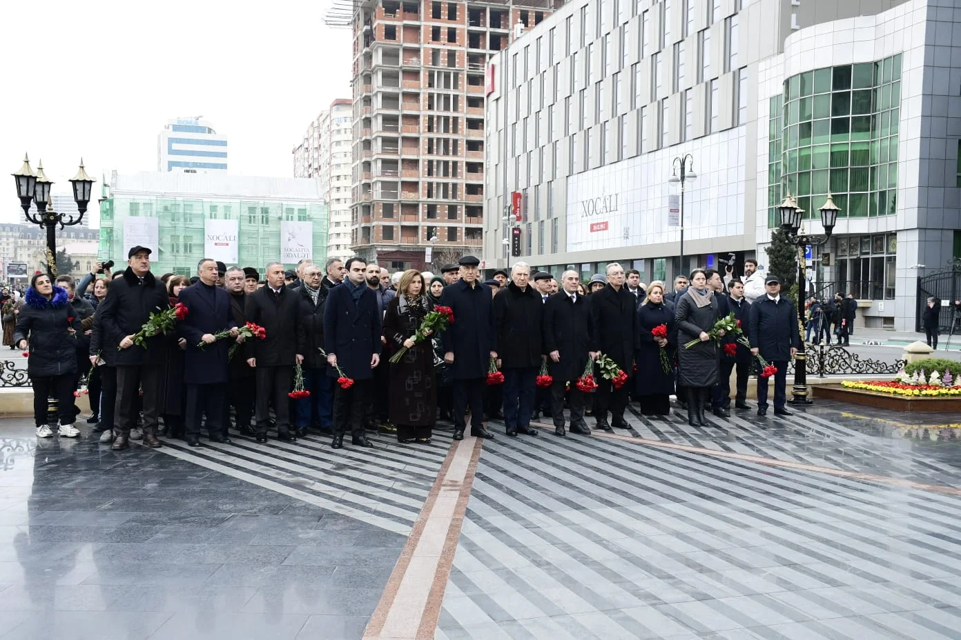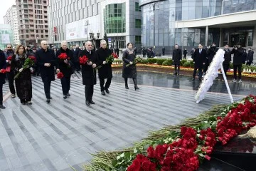 Abidənin önünə əklil və gül dəstələri qoyulub, soyqırımı qurbanlarının əziz xatirəsi ehtiramla yad olunub.