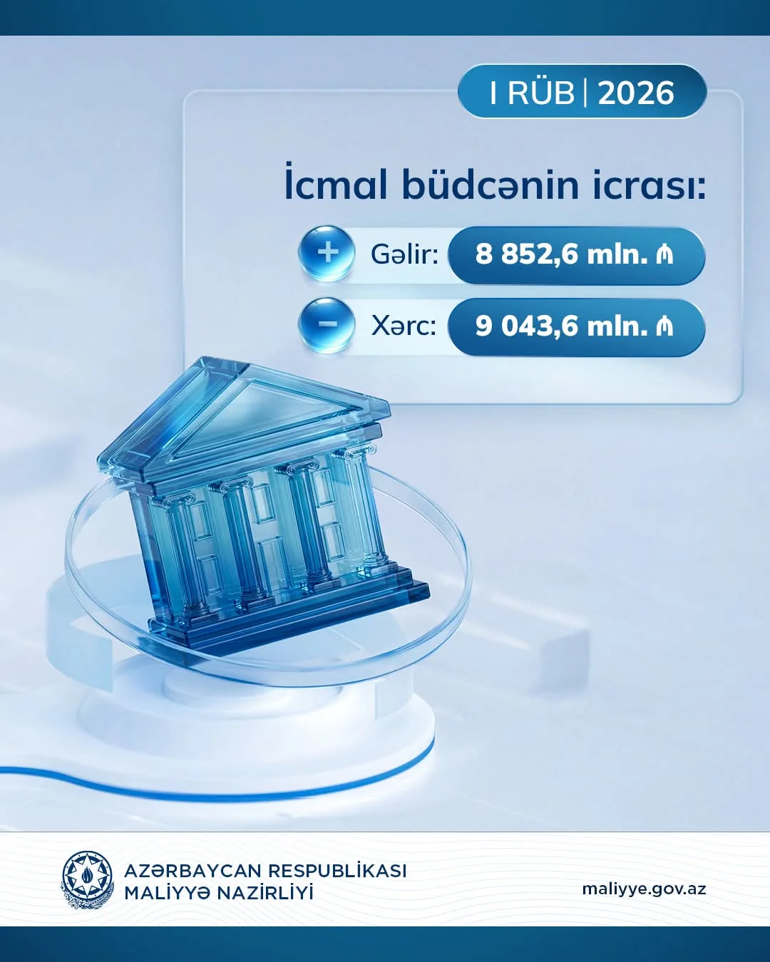 2026-cı ilin yanvar-mart ayları ərzində icmal büdcənin gəlirləri 8 852,6 milyon manat, xərcləri isə 9 043,6 milyon manat məbləğində icra edilib.