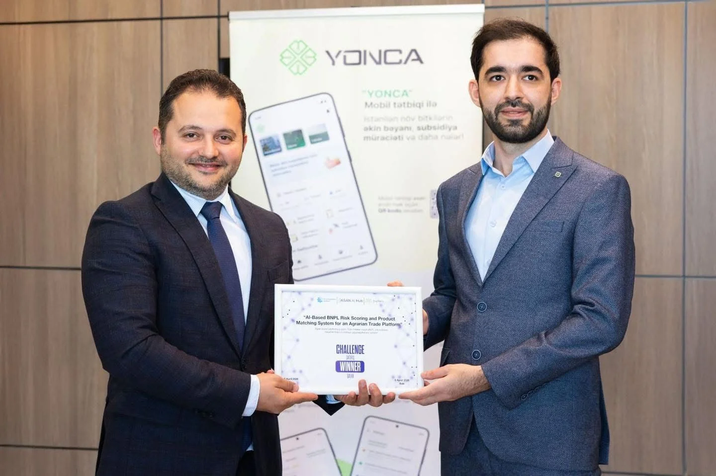 "Aqrar Ticarət Platforması üçün süni intellekt əsaslı ‘İndi al, sonra ödə’ (BNPL) risk qiymətləndirmə və məhsul uyğunlaşdırma sistemi" mövzusu üzrə çağırışın qalibləri Sənan Cəfərov və Xəyal Əhmədov, “YONCA: Süni intellekt əsaslı gündəlik təsərrüfat planlayıcısı – datasız işləyən prototip” çağırışı üzrə isə Zümrüd İsmayılova və Asiman İsmayılova seçiliblər.