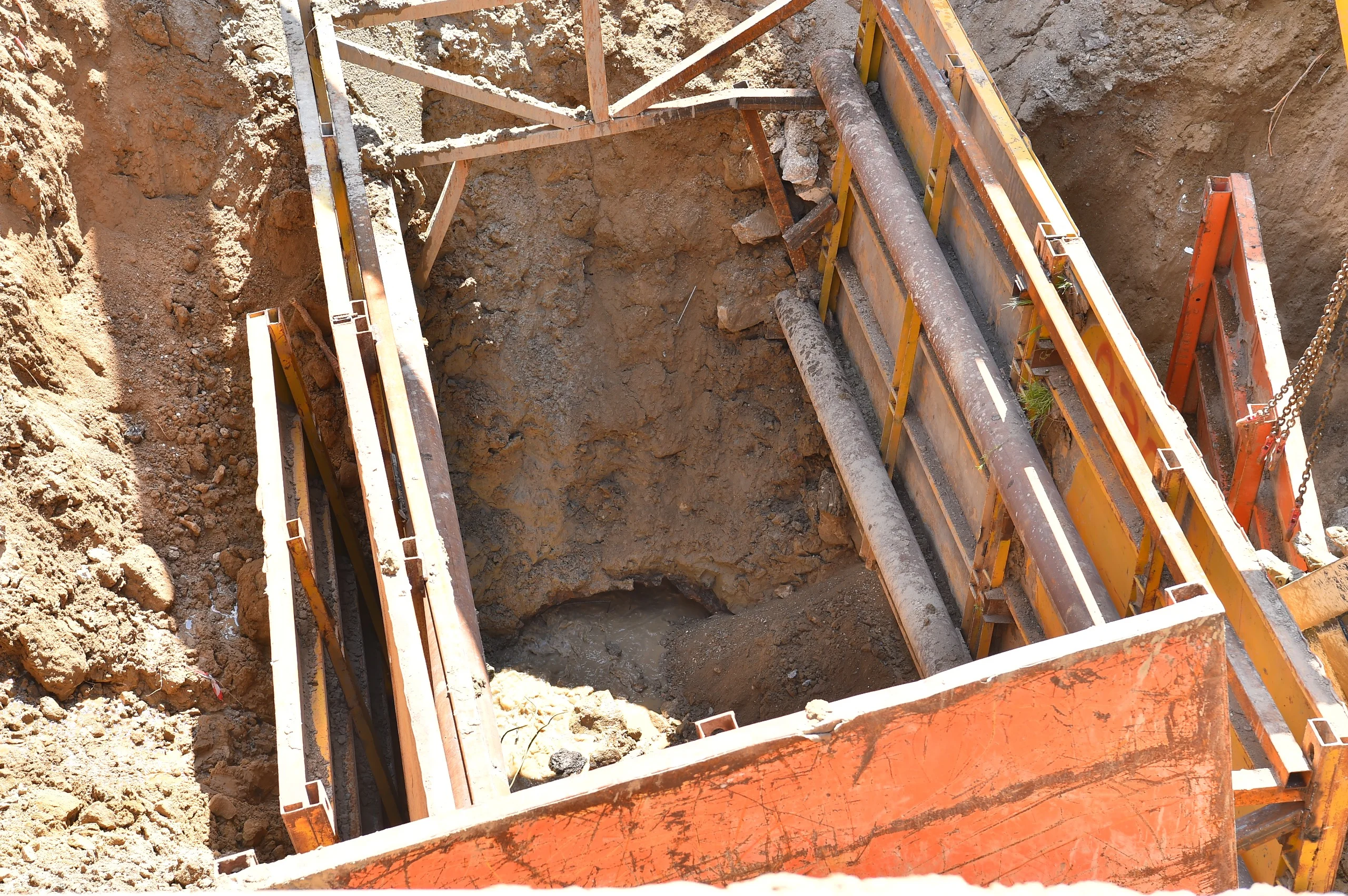 Üzərində evlər tikildiyinə görə çökən kollektorun qəzalı hissəsi dəyişdirilir