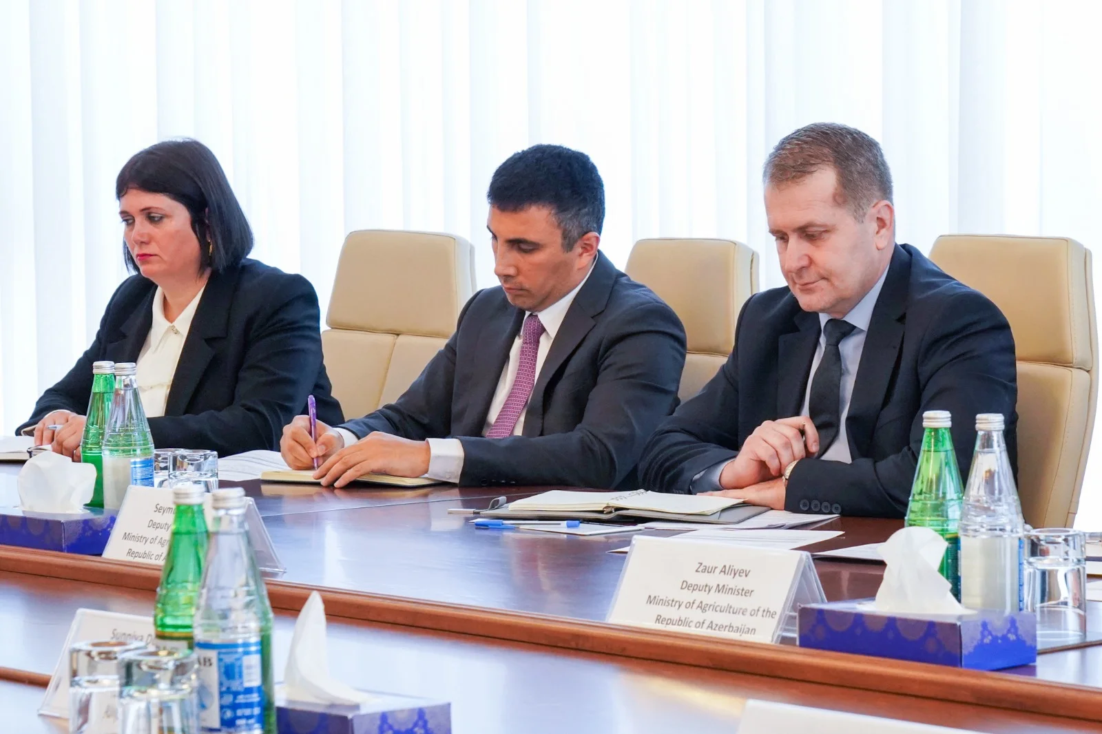 Kənd Təsərrüfatı Nazirliyində Asiya İnkişaf Bankının (AİB) nümayəndə heyəti ilə görüş keçirilib. Görüşdə kənd təsərrüfatı nazirinin müavinləri Seymur Səfərli və Zaur Əliyev, Aqrar Kredit və İnkişaf Agentliyinin sədr müavini Leyla Cabbarlı, aidiyyəti struktur bölmələrin nümayəndələri, AİB-in Mərkəzi və Qərbi Asiya Departamentinin baş direktoru Leah Gutierrez, Bankın Azərbaycandakı ölkə üzrə direktoru Sunniya Durrani-Camal, ölkə üzrə əməliyyatlar rəhbəri Marina Best və digər nümayəndələr iştirak ediblər.