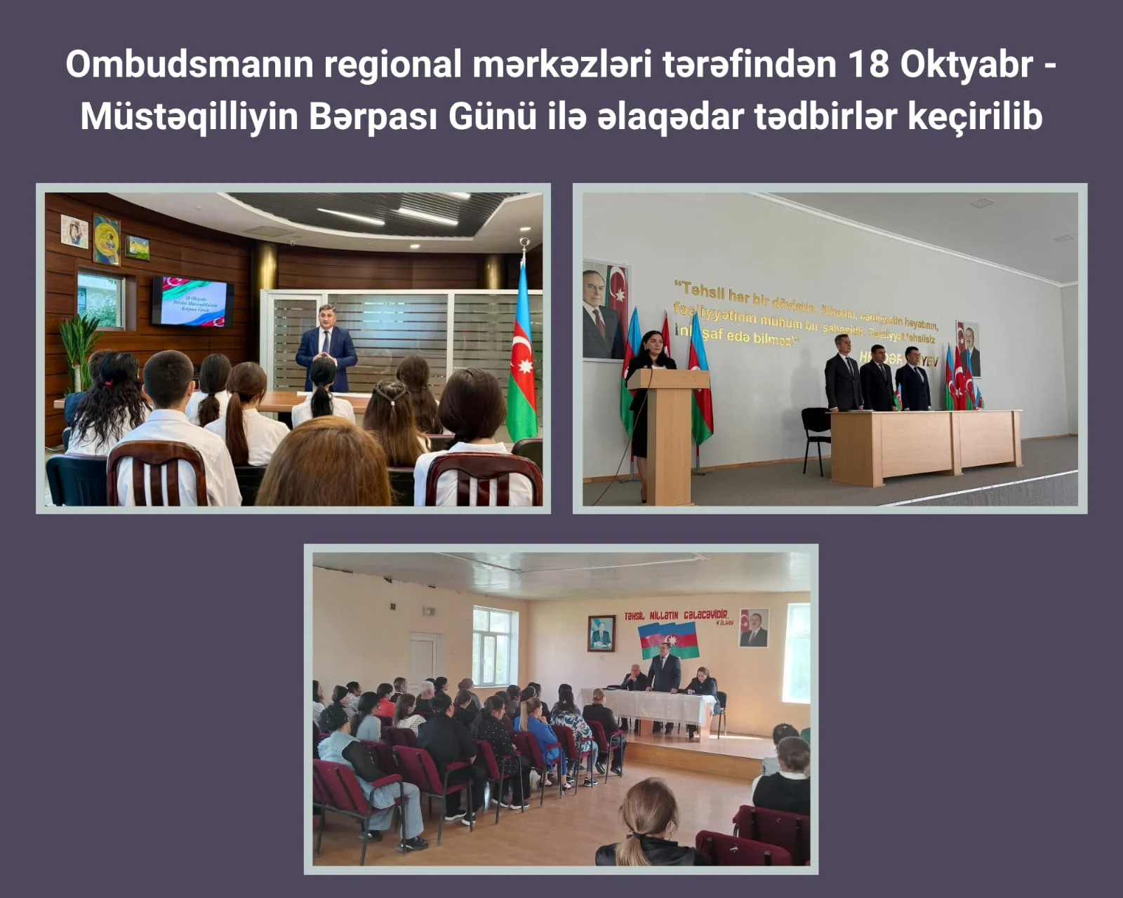 Ombudsmanın regional mərkəzləri tərəfindən Müstəqilliyin Bərpası Günü ilə əlaqədar tədbirlər keçirilib